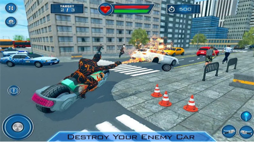火焰超级英雄免费版是一款融合动作射击与城市冒险的3D手游。玩家将化身掌控火焰之力的英雄,穿梭于摩天大楼之间展开热血激战。游戏采用开放世界设计,街道上遍布伺机作乱的暴徒集团,玩家需运用飞行能力与激光射线,在车水马龙的都市中展开惊险追逐。独创的载具操控系统让玩家可驾驶机车进行高速拦截,配合粒子特效打造的火爆战斗场景,带来沉浸式英雄体验。