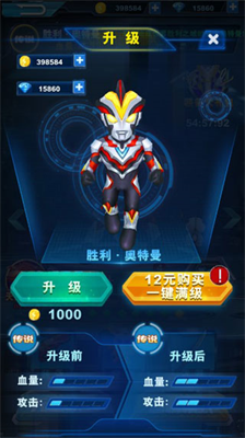 3、每位奥特战士配备专属武器库,通过强化改造可解锁影视剧经典必杀技