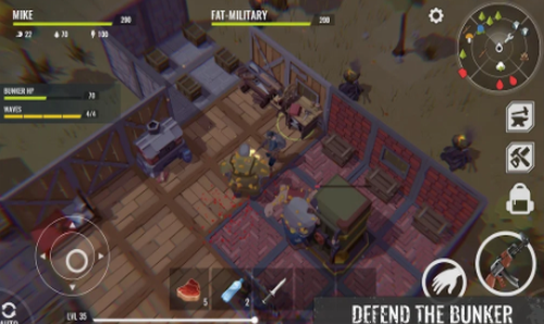 昼夜系统构建真实生存节奏,黎明时分需外出收集木材、矿石等基础物资,暮色降临时必须返回加固防御工事。独创的沙盒建造系统支持自由设计多层防护墙与瞭望塔,废弃汽车、变异植物等场景元素均可转化为战略资源。
