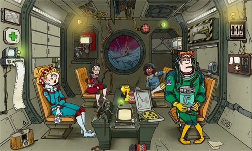 背景设定于冷战时期的架空宇宙,融合复古未来主义美学与黑色幽默叙事。玩家将体验镀铬飞船与量子科技的碰撞,遭遇戴着呼吸面罩的太空蟑螂等荒诞生物。每次跃迁都会生成全新星域地图,结合程序化事件系统打造永不重复的生存剧本。