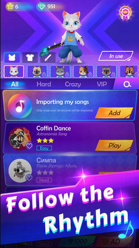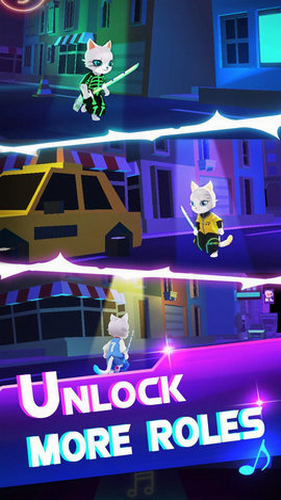 1、角色形象萌动可爱,猫咪战士手持光剑劈砍节奏方块的设定充满趣味性