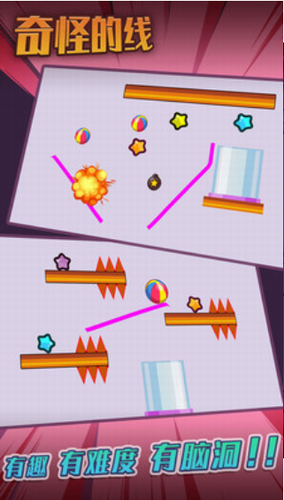 奇怪的线益智烧脑闯关游戏是一款融合物理知识与创意解谜的休闲益智类手游,游戏采用低多边形美术风格构建独特视觉体系,精致简约的界面设计与动态光影效果相得益彰。玩家需通过精准绘制引导线,运用抛物线原理与重力计算,帮助彩色弹珠穿越复杂地形抵达目标容器,完成关卡挑战的同时还需收集散落星徽解锁隐藏内容。