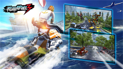 2、独创的载具动态平衡系统,玩家在做出高空翻转、水面漂移等特技时,需通过重力感应精准控制重心,每项特技成功后可激活氮气加速状态