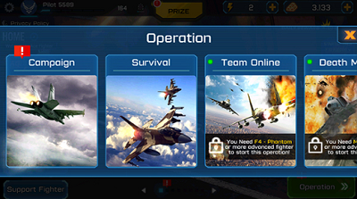 20款原型战机均配备独立研发树,从发动机推力强化到隐身涂层升级,每个模块改造都会影响实战表现。动态任务系统每天生成百余种作战方案,包含护航拦截、超低空突防等真实作战科目,完成特定成就可解锁历史著名涂装。