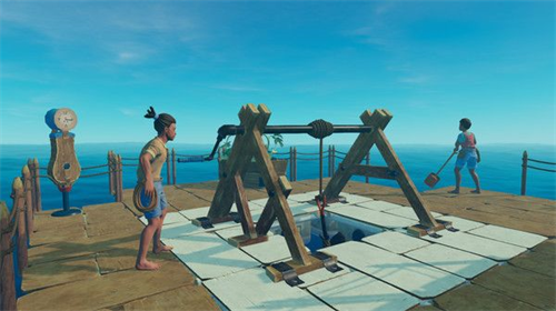 1、物理引擎模拟真实漂浮状态,木筏扩建需考虑重心平衡与结构强度
