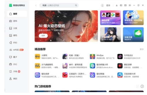 联想应用商店电脑版是一款专为Windows用户打造的全能型软件管理工具,集资源下载、系统优化与个性化服务于一体。其核心优势在于提供经过严格安全检测的应用程序,覆盖办公、娱乐、教育等十余个分类,同时支持壁纸更换、垃圾清理等实用功能,为电脑使用者打造高效便捷的数字化体验。