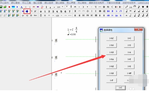 2. 调性调整功能位于工具栏显眼位置,通过可视化调号面板可快速切换音乐调式。选取目标调性后,系统自动同步所有关联音符