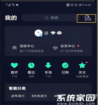 2. 在个人中心页面右上角可看到由三个点组成的菜单图标,轻触该图标后会弹出功能列表。此时需选择【设置】入口,此处集中管理账户信息、播放设置及存储权限等关键参数。