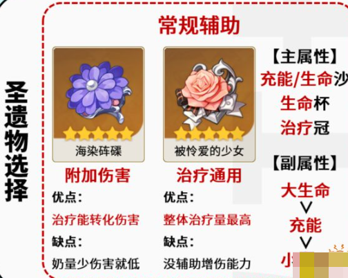 常规治疗向:元素充能效率沙漏 生命值加成杯 治疗增幅头冠