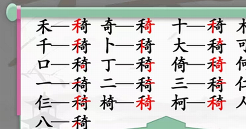 1、核心拆分成果包含:禾、奇、十、木、千、卜、大、可、口、丁、倚、何、一、二、三、仁、椅、柯、人、八、仨。建议按结构层级逐步分析: