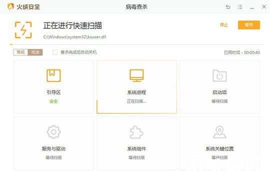 执行安全扫描时可根据需求选择三种模式:全盘查杀模式适合新装系统全面检测,快速查杀模式针对系统关键区域进行重点扫描,自定义查杀模式则支持用户指定特定目录。推荐首次使用选择"快速查杀"功能,扫描过程中程序会实时显示检测进度与威胁统计。