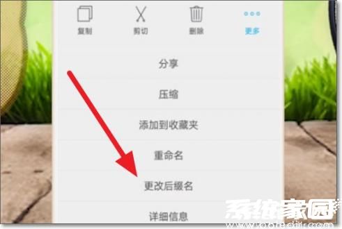 5、选择重命名功能。注意区分系统自带工具与第三方应用的界面差异,重点寻找包含"重命名"或"更改后缀"字样的按钮。