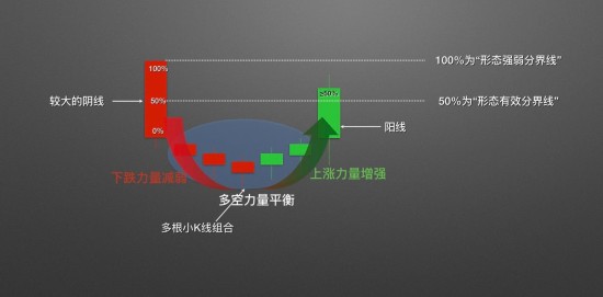 该形态由三阶段构成:初期长阴确立空头优势,中期5-7根整理型K线形成平台,末期长阳突破平台中轴。有效性确认需满足突破阳线收盘价超过首日阴线实体50%位置。