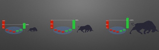 多头吞噬形态表现为阳线实体完全覆盖前日阴线,显示市场主导权转移。根据覆盖程度可分为三个强度等级:基础覆盖型(阳线实体刚超阴线)、强势覆盖型(阳线达阴线两倍)、多重覆盖型(单阳吞没多根阴线)。