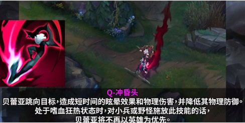 2、近身后立即激活W技能「鲜血狂乱」进入狂暴状态,该操作会立即重置普攻计时器。在此状态下,攻速与移速的双重提升可使贝蕾亚快速叠加被动层数。