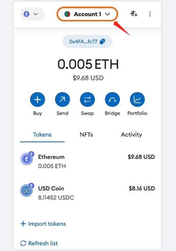 1、启动移动端应用程序后,在钱包主界面顶部定位账户切换区域,轻触当前账户头像标识。