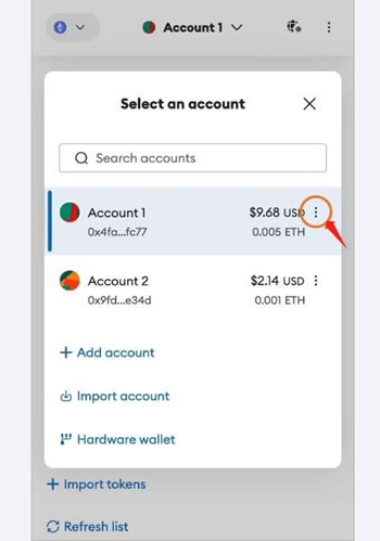 2、在展开的账户列表中,定位目标账户右侧的功能菜单标识(三个竖排圆点图案),需注意此操作仅限账户创建者权限。