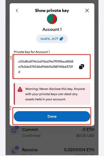 6、轻触「复制私钥」按钮将完整密钥存入设备剪贴板,建议立即将内容转移至物理介质保存。完成备份后,请务必点击安全退出按钮终止当前会话。