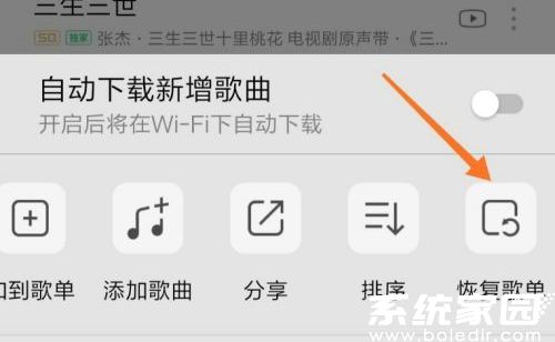 5、在展开的扩展菜单中点击「恢复歌单」选项,系统将跳转至回收站界面。该页面会分类展示不同时间段删除的曲目,保留期限根据存储空间自动调节。