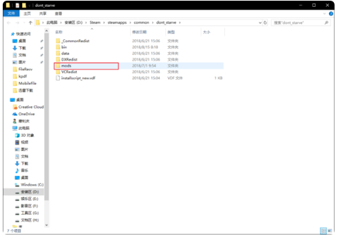 4、在游戏安装主目录中,定位到名为mods的专用文件夹,该目录即为所有创意工坊订阅内容的存储位置。