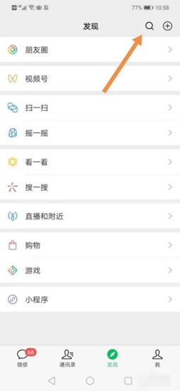 1、启动微信客户端,在底部导航栏找到搜索入口(放大镜图标)。