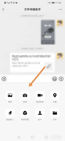 4、点击加号会弹出多媒体选择菜单,包含相册、视频、文件等多个传输选项。用户可根据需求选择对应类型: